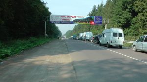 Die ukrainischen Ausreiseformalitäten waren in 20 Minuten erledigt, aber die Wartezeit incl. Rückstau für die Einreise nach Polen betrug 5 Stunden. Nach 10 Minuten hektischer Fahrzeuguntersuchung brachen die Zollbeamten die Kontrolle ab und wiesen eine „Spezialkontrolle“ an. In einem separat abgesperrten Bereich warteten wir 2,5 Stunden mit anderen Schmuggelverdächtigen. Dann mussten wir in der Untersuchungshalle unser Fahrzeug ausräumen und das Dachzelt aufbauen. Nach insgesamt 8.5 Stunden durften wir dann endlich weiterreisen.