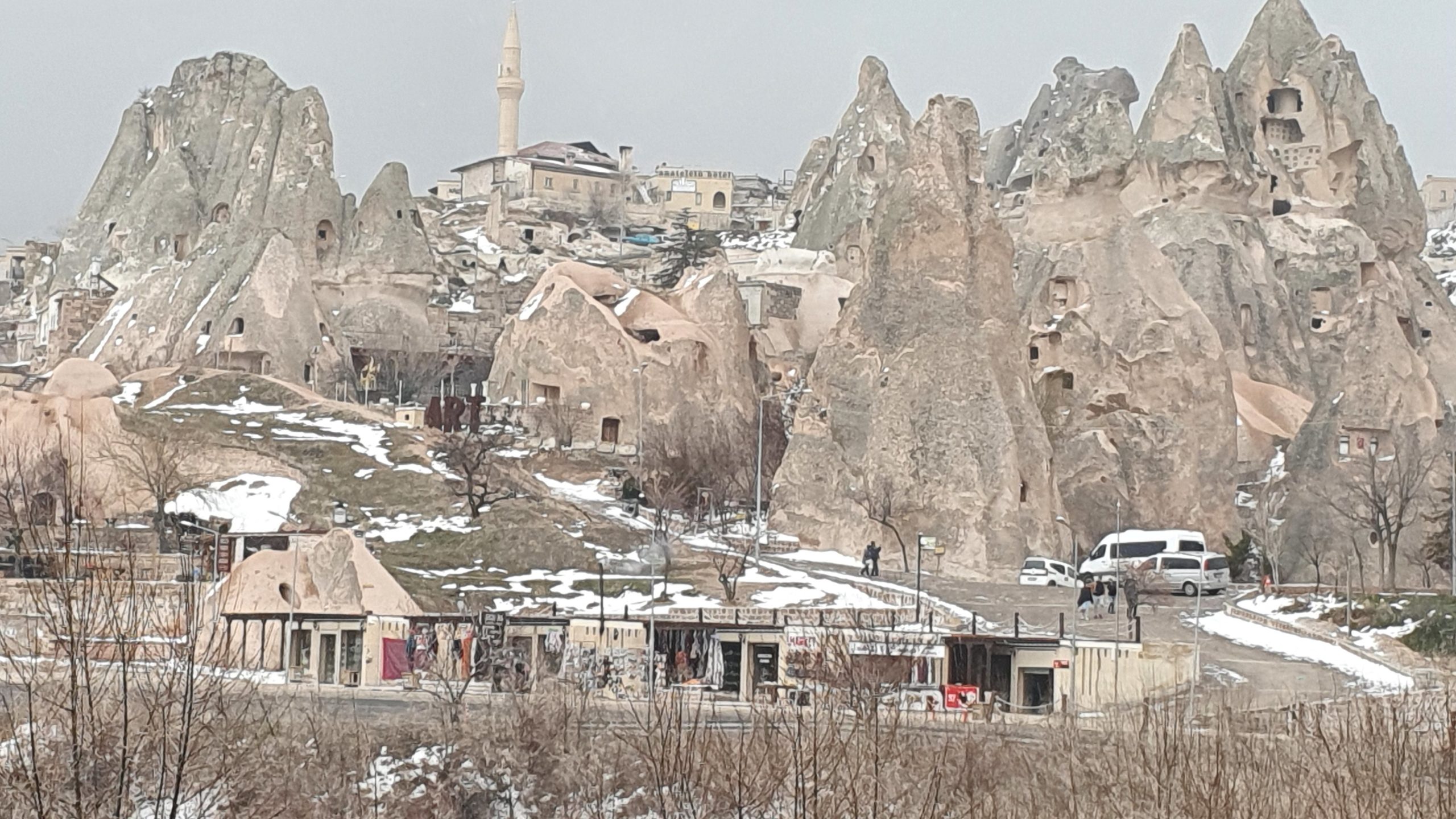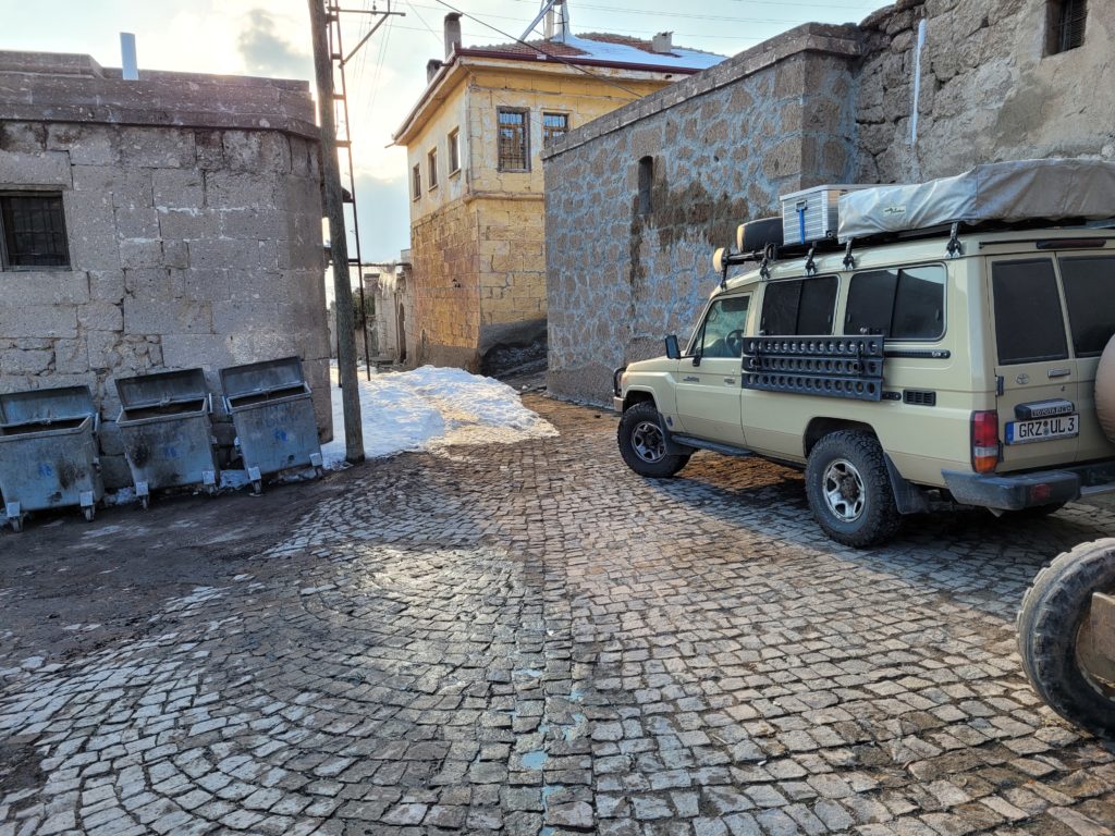 Zur Übernachtung fanden wir ein schönes Hotel in Pinarbasi. Reichlich Schneefall bei -7°C führten zur nächsten Planänderung. Ursprüngliches Ziel war die Welterbestätte Nemrut Dagi mit anschließender Weiterfahrt zum Van See. In Van hatten wir auch eine Möglichkeit für den Covid19-PCR-Test gefunden, den wir für die Einreise in den Iran brauchen. Die Befahrbarkeit der Passstraßen war fraglich und für Van waren waren bis zu -12°C angekündigt. Wir blieben eine weitere Nacht in Pinarbasi und fuhren nun auf direktem Weg Richtung Iran. Dabei überquerten wir mehrere Pässe mit über 2.200 m Höhe.