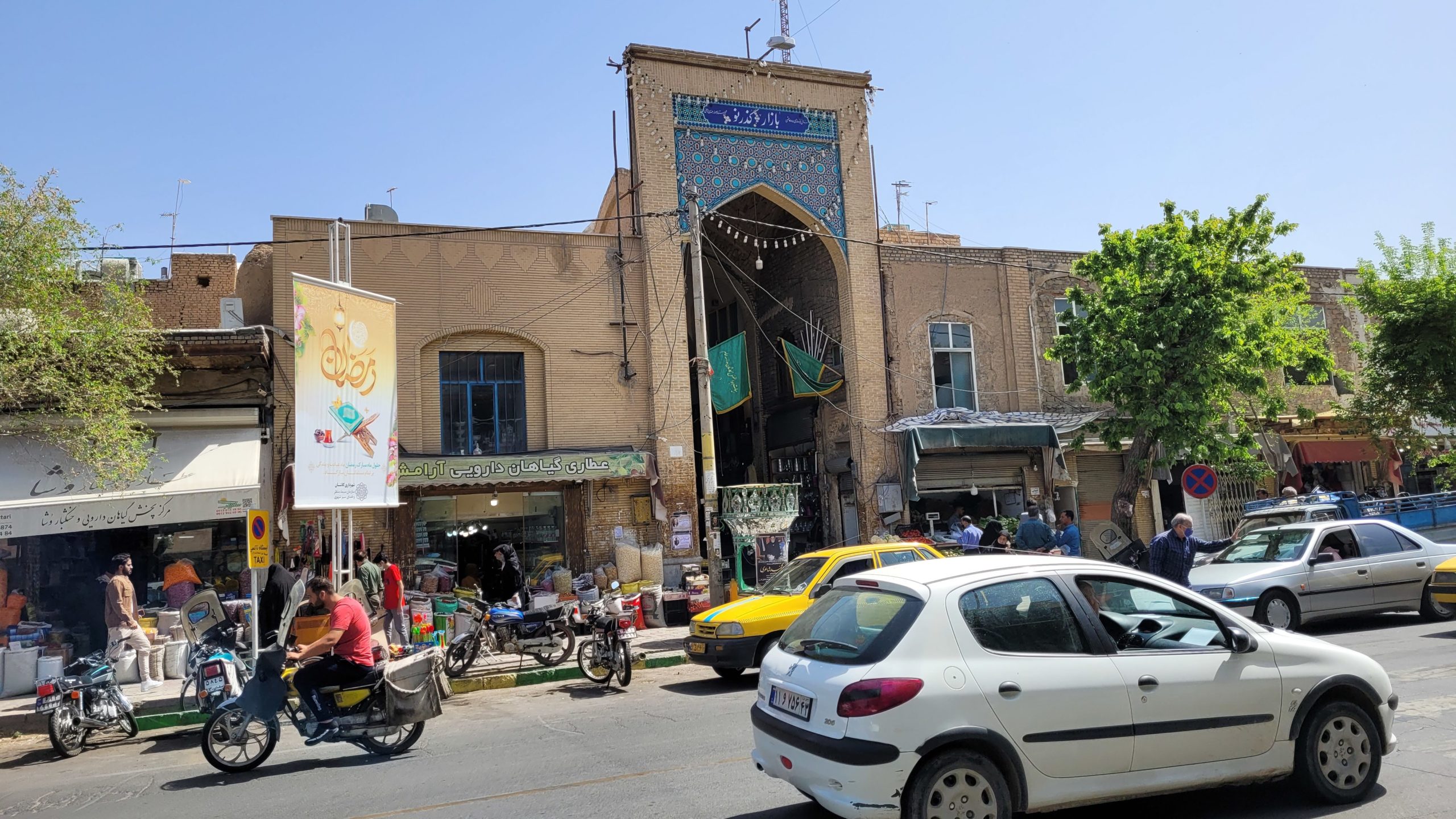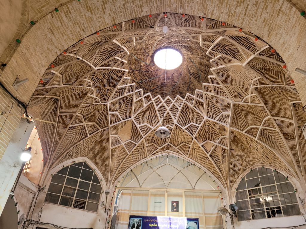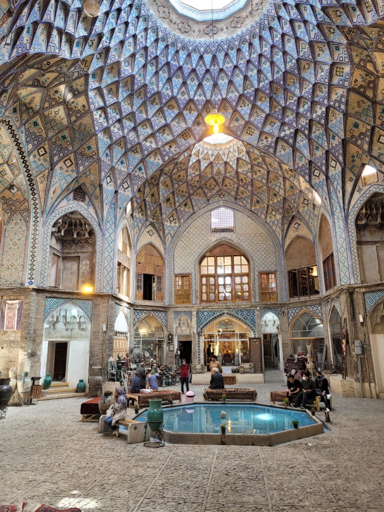 Kashan, 200 km nördlich von Isfahan, ist eine von Touristen nur wenig besuchte Stadt. In der lebhaften Stadt sind die Sehenswürdigkeiten relativ eng von Gebäuden umstanden und nicht von den Hauptstraßen sichtbar. Wir besichtigten den nördlichen Teil des Zentrums inklusive Basar. Mit seinen überkuppelten Gassen ist er einer der architektonisch sehenswertesten Basare Irans.