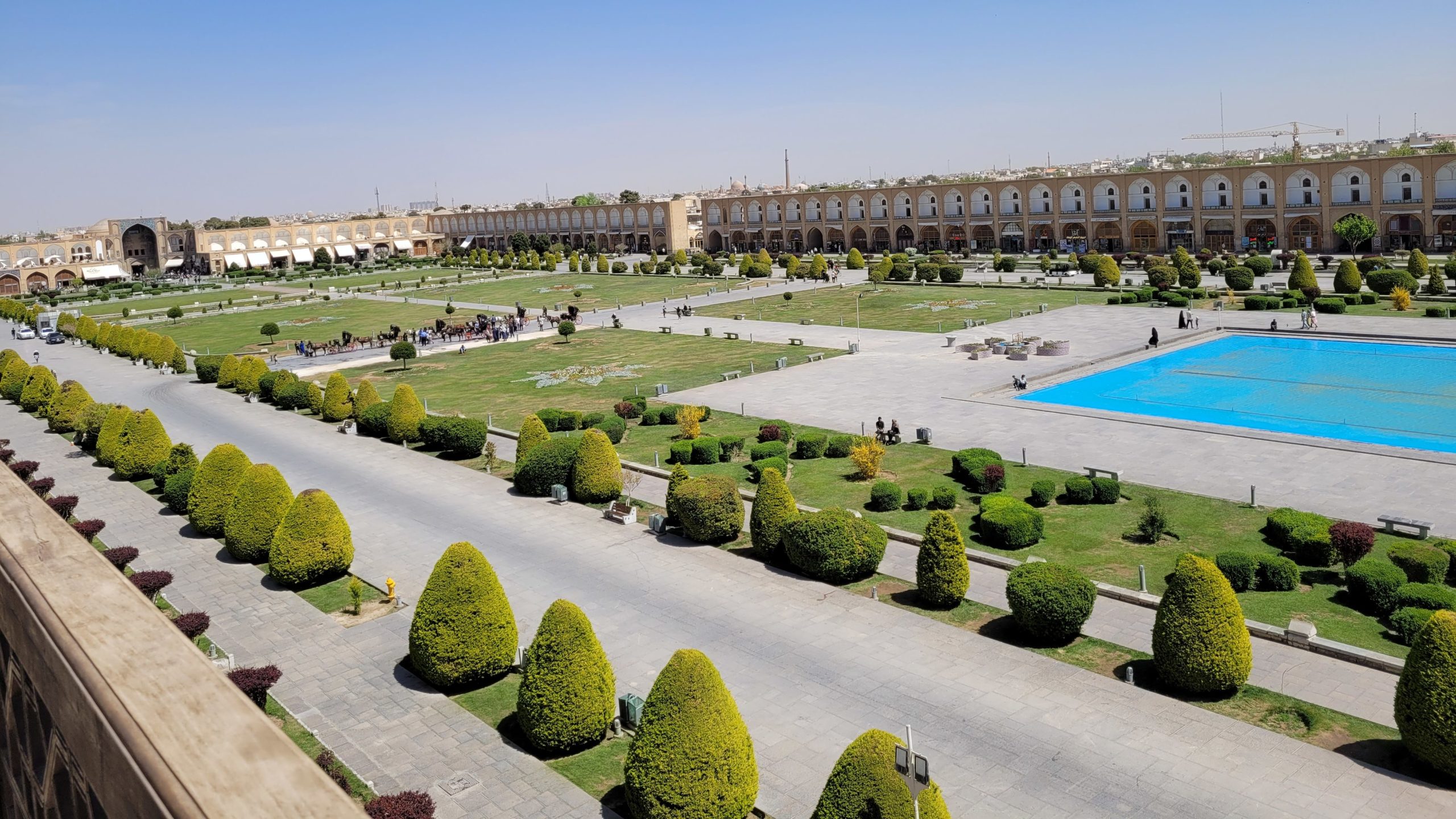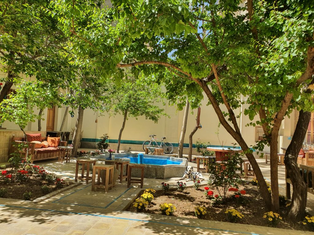 Mahbibi, die als bestes Hostel Irans ausgezeichnete Unterkunft erlaubt Gäste mit Hund. Das Hostel ist ideal gelegen. Zu den Sehenswürdigkeiten um den Meydan-e Imam sind es 10 Minuten Fußweg nach Norden. Der schönste Platz der Welt ist gleichzeitig der zweitgrößte (524 x 160 m).