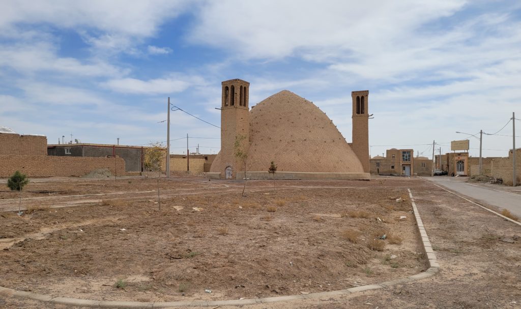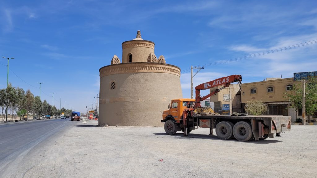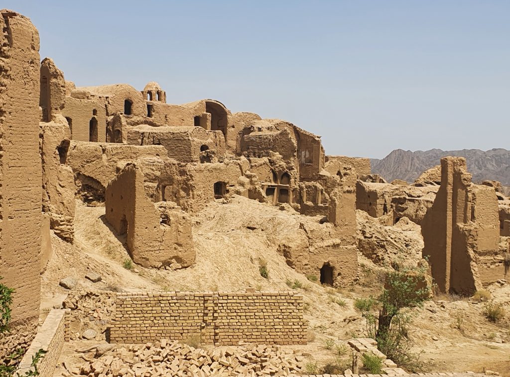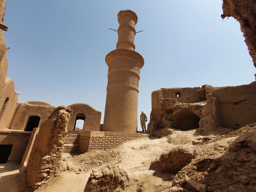 Nächster verlassener Wüstenort war Kharanaq, 80 km nördlich von Yazd. Hier ist eine komplette Altstadt in Lehmbauweise verlassen und dem Verfall preisgegeben. Nur wenige Reparaturversuche sind zu erkennen. Das weltweit höchste Minarett in reiner Lehmbauweise kann man angeblich in Schwingung versetzen, aber der Zugang zum Gebäude war nicht offen. (Wir waren die einzigen Besucher.)