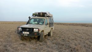 In der Nähe von Sarqan sollte ein Camp existieren – der Platz war ein noch nicht abgeerntetes Getreidefeld. Mittlerweile überraschen uns diese Fehlschläge nicht mehr. Wir wählten einfach eine unbewirtschaftete Wiese als Stellplatz.