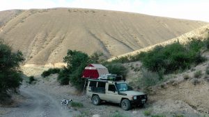 Wir übernachteten hinter einem Hügel am Highway nach Ashgabat in der Nähe von Kaahta.