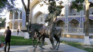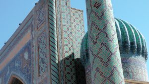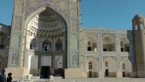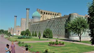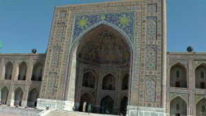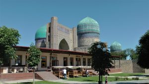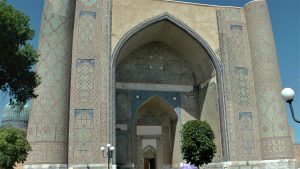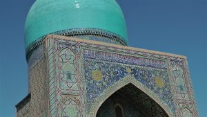 Das Mausoleum von Timur Lenk (Tamerlan) wurde auf Anweisung Stalins wegen angeblich wissenschaftlicher Nachweise geöffnet. Wahrscheinlicher ist jedoch das Motiv, die Schätze der Grabbeigaben zur Finanzierung des Krieges gegen Deutschland zu nutzen. In Samarkand sind die Sehenswürdigkeiten in größeren Entfernungen über die Altstadt verteilt. So beendeten wir nach dem Erreichen der Bibi Khanum Moschee und Mausoleum unsere Erkundung zu Fuß.