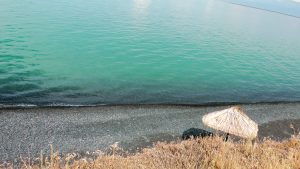 Es wird berichtet, dass das Wasser des Alaköl die Heilwirkung des Toten Meeres übertreffen soll. Beim Baden erschien uns das Wasser nicht sehr salzhaltig zu sein. Das Wasser des mehr als 50 km x 100 km großen Sees und der schwarze Kiesstrand sind durch das Fehlen jeglicher Industrie völlig sauber.