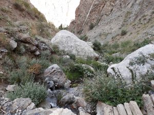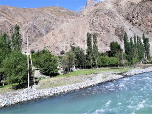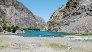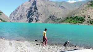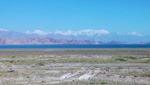 Beim Morgenspaziergang am See waren die umgebenden Berge gut zu sehen. Wir konnten jedoch nicht feststellen, welches der 7.134 m hohe Pik Lenin war.