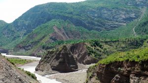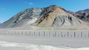 Die Straße führte entlang des Grenzzaunes zu China, der z.T. große Löcher aufwies.