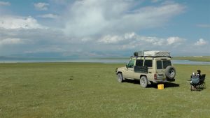 In Kochkor tauschten wir nochmals Geld und aßen im Restaurant Plow, das kirgisische Nationalgericht. Kurze Zeit später erreichten wir den Ysyk-Köl, den zweitgrößten Bergsee der Erde. In Tong fanden wir an dessen Ufer einen schönen Stellplatz, an dem wir auch Baden konnten.